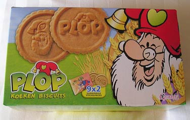 We do have regular contests when we go abroad to bring back the most strangely named snack. Recently whilst in Belguim, I got hold of some `Plop` biscuits. Photo of packet attached. We soon realised why they are so named their dunkability rating was somewhere around minus 3 and `Plop` was the sound the biscuit made on it's way to the bottom of your mug! More worryingly each biscuit was individually wrapped with a picture of a gnome-type man wearing a pair of pants on his head!!